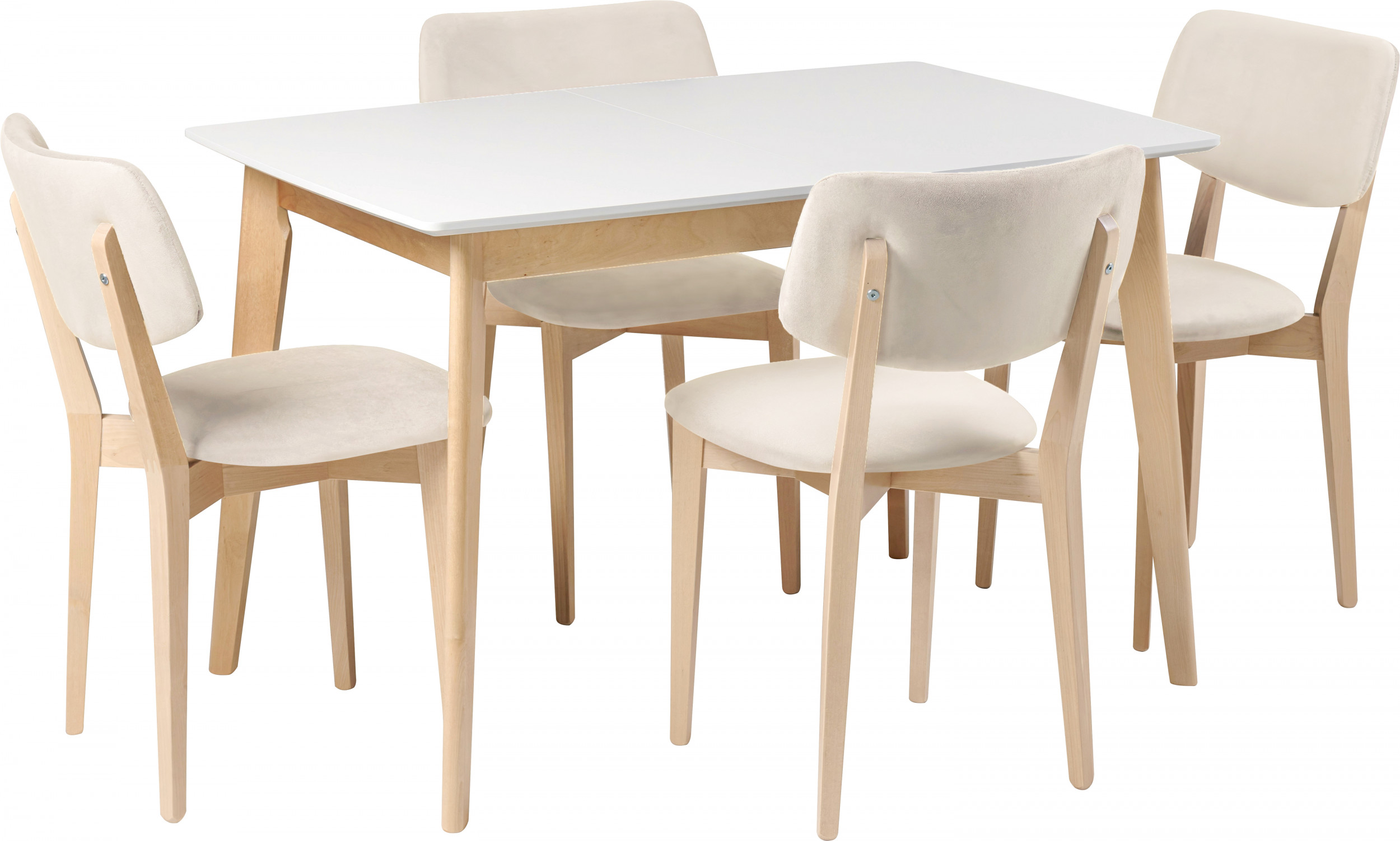 Обеденная группа стол раздвижной Норден 120 Белый/Натуральный и 4 стула Мэти Натуральный/Кремовый велюр