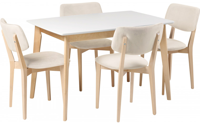 - Обеденная группа стол раздвижной Норден 120 Белый/Натуральный и 4 стула Мэти Натуральный/Кремовый велюр