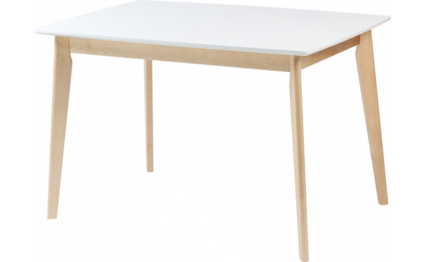 Стол изготовлен из массива березы, столешница выполнена из МДФ толщиной 19 мм. Столешница прямоугольной формы, длинной 120 сантиметров в сложенном виде, раскладывается до 160 сантиметров за счет вставки бабочки которая хранится в самом столе, механизм раздвижения на шариковых направляющих синхронного типа, ширина столешницы 80 см.